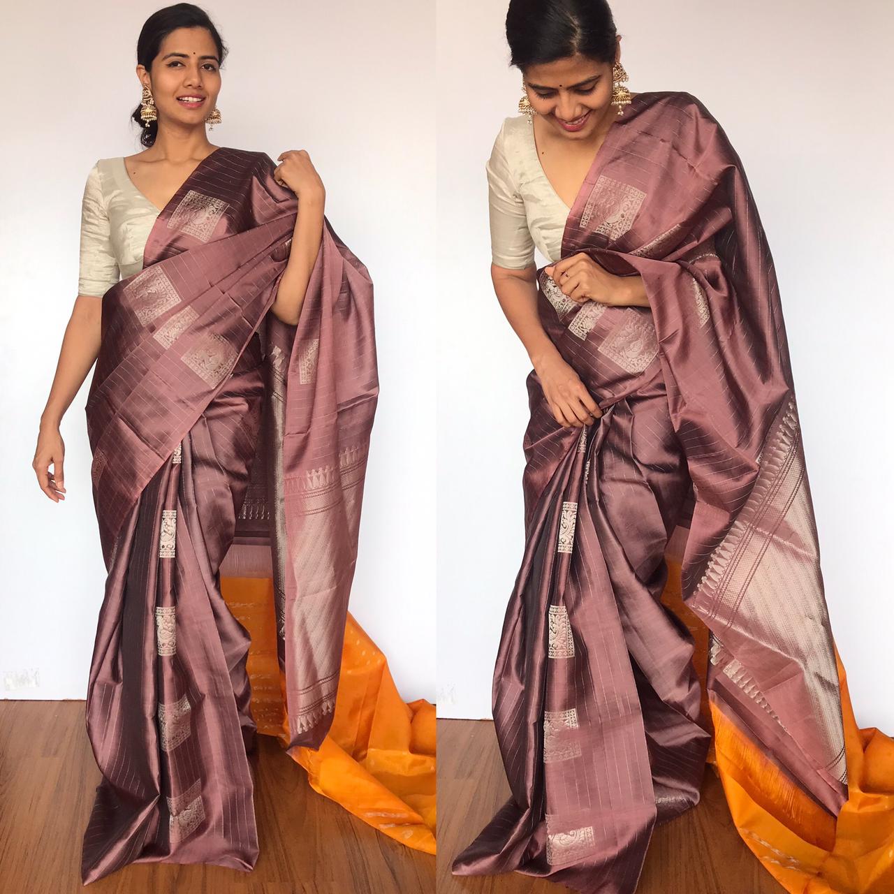 • Teamed up with contrast unstitched blouse in Pure Silk