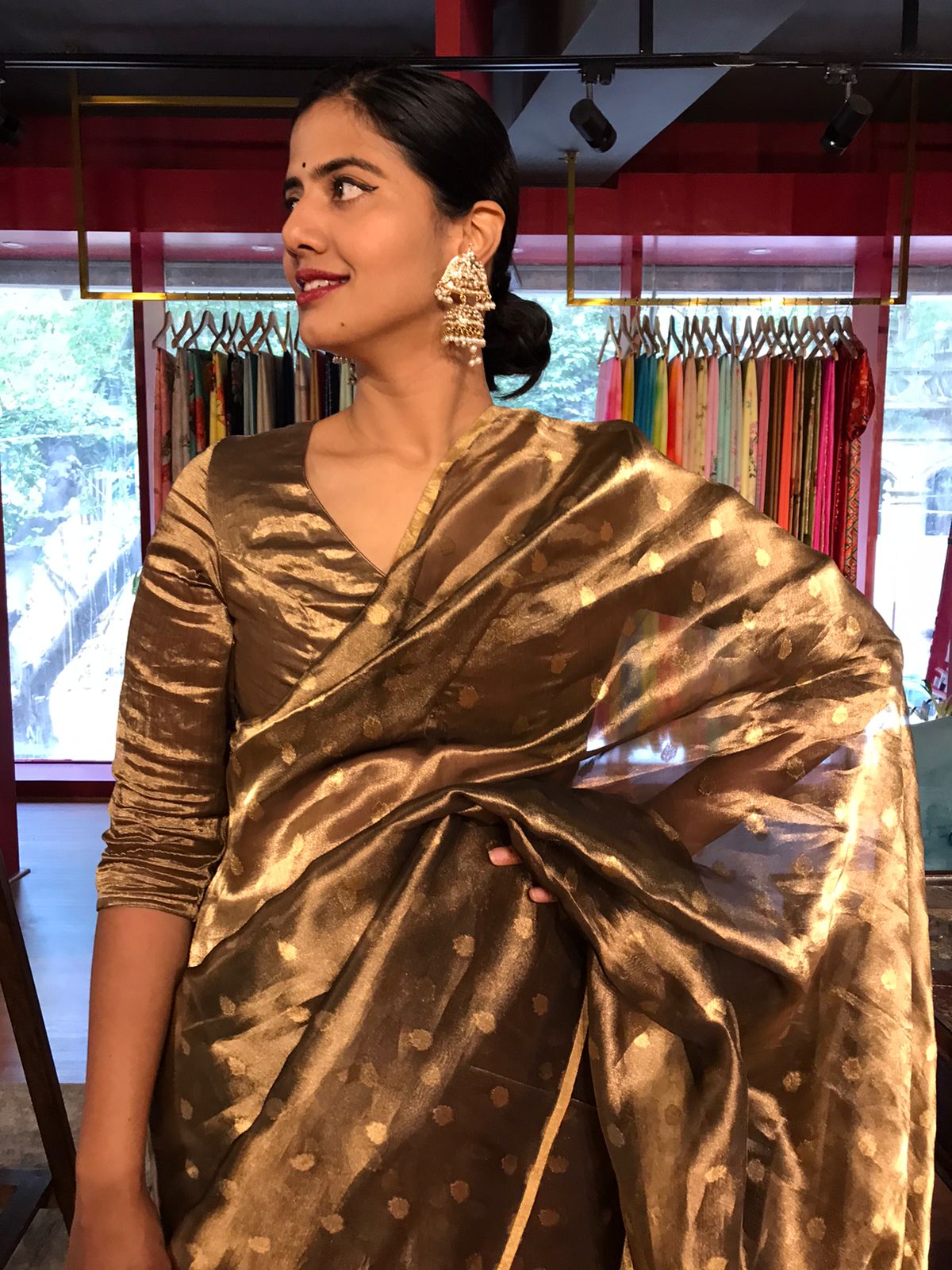 Metallic Gold Tissue Silk Saree woven with Beautiful Gold Zari Buttis