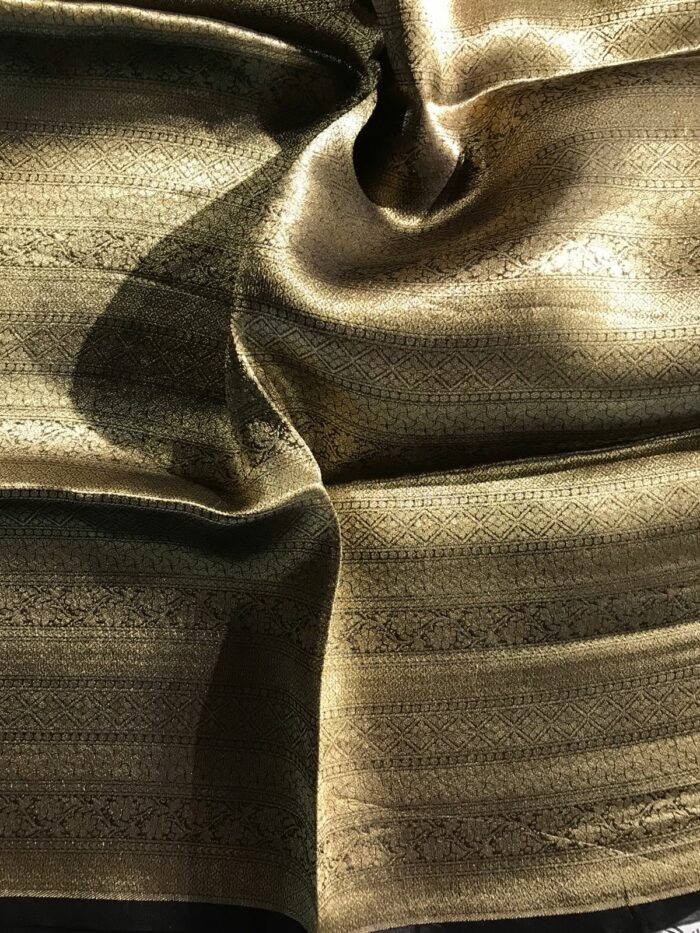 Steam /Iron – Ironing Tissue Silk Sarees requires special care to avoid damaging the delicate fabric. Always iron your saree on a low heat setting and use a pressing cloth or a thin cotton cloth to protect the fabric.