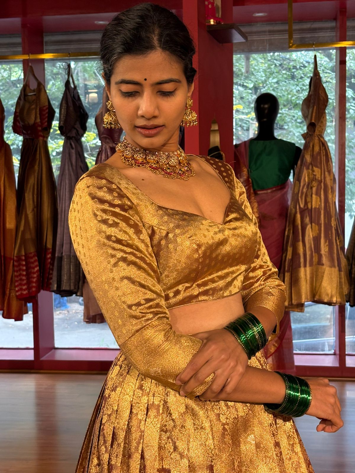 Molten Gold Tissue Silk Lehenga (Set of 3) Original price was: Rs 19,900.00.Current price is: Rs 17,910.00.