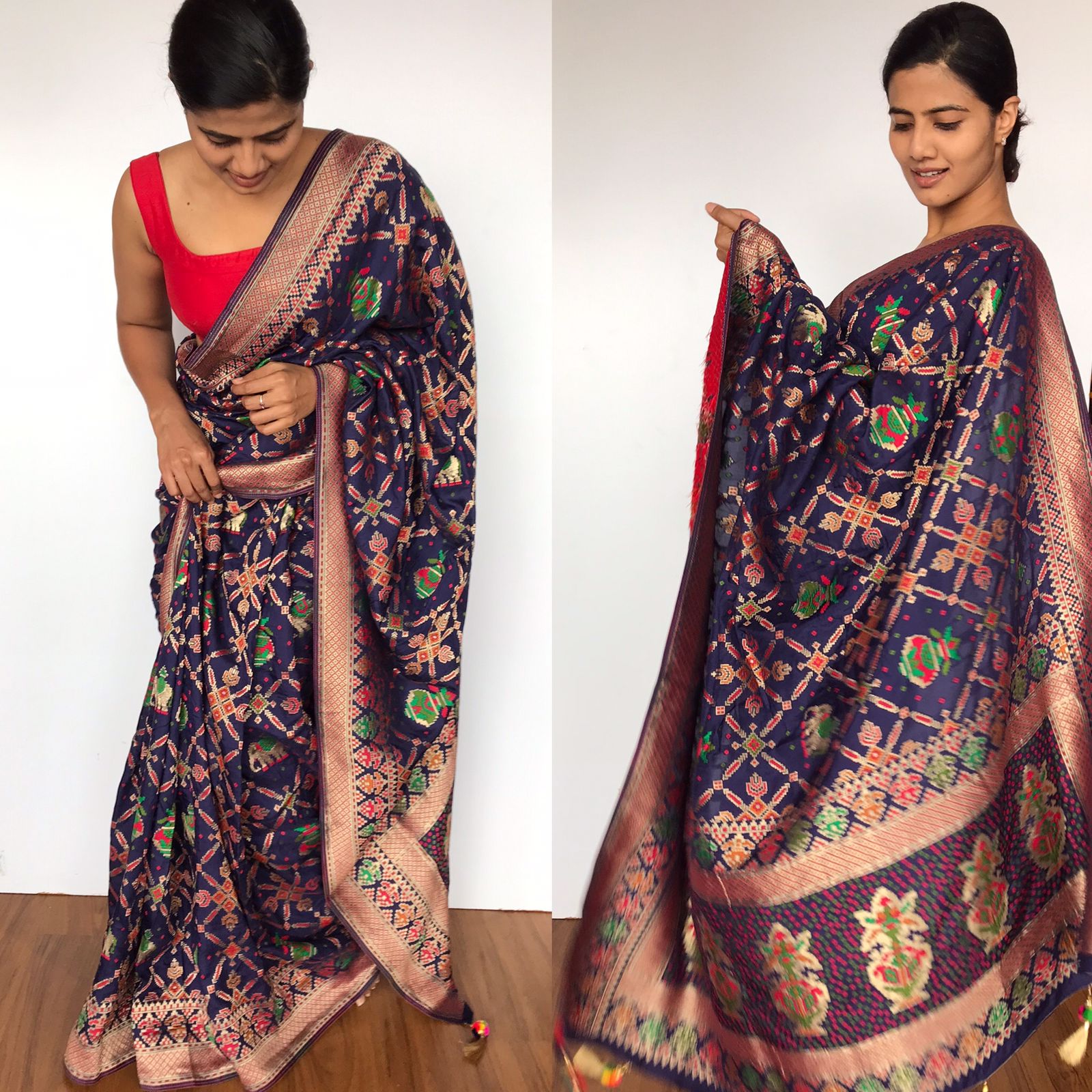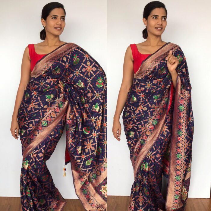 Navyblue Banarasi Silk Saree in Georgette with Beautiful Gharchola Weaves