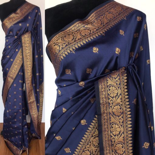 • Navyblue Banarasi Silk Saree with Gold Zari Buttas