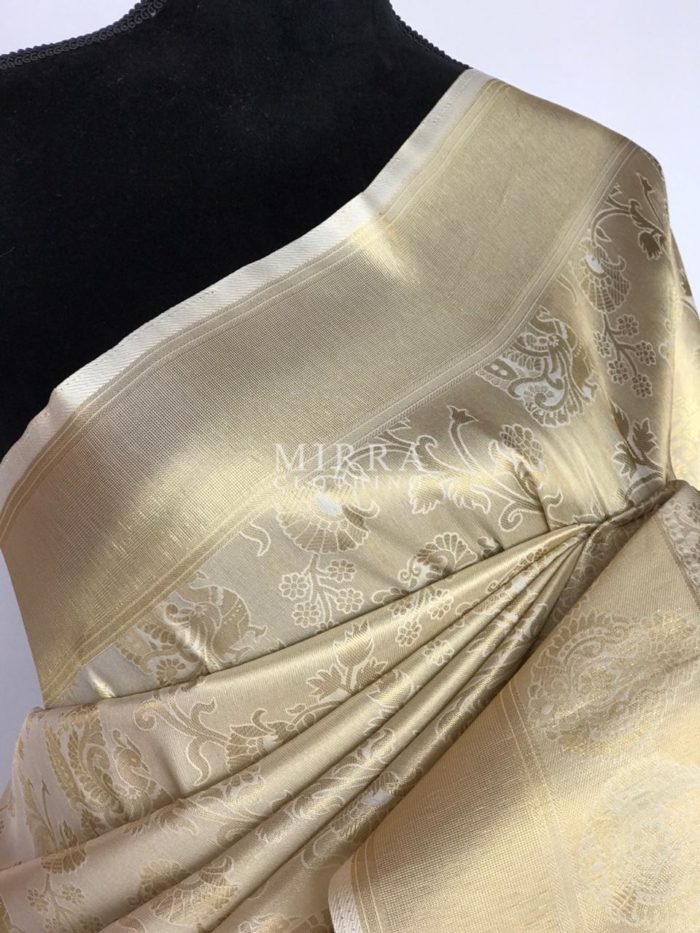 Off white Banarasi Silk Saree with Gold Zari Weaves