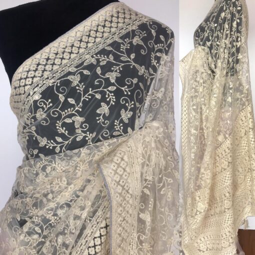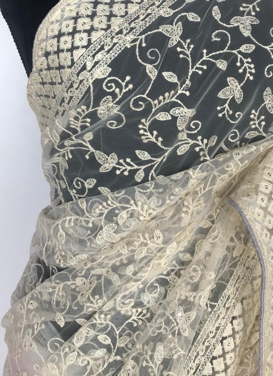 • Off white Designer Net Saree with Embroidery