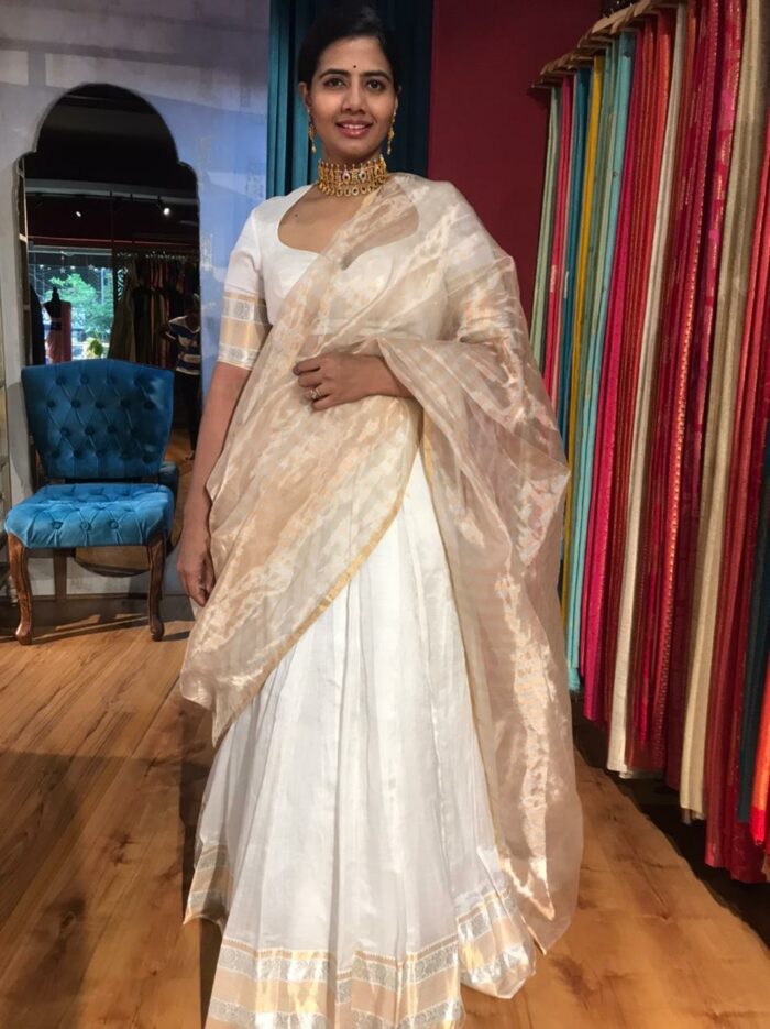 Offwhite with Gold Tissue Silk Dupatta adorned with zari piping