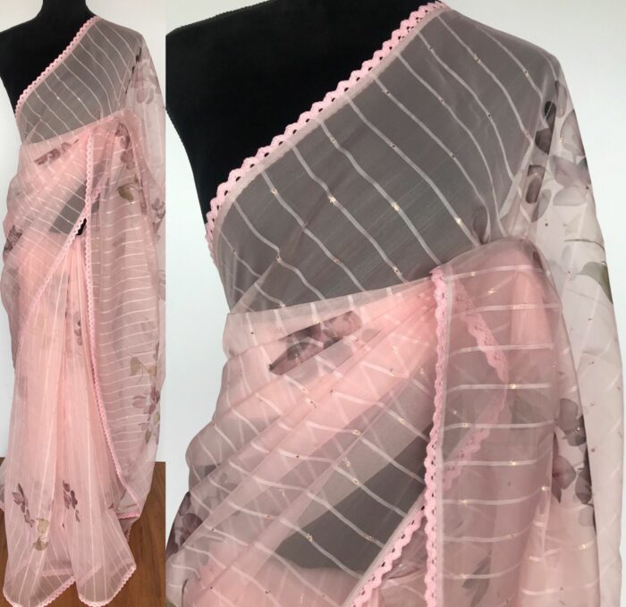 Peach Organza Saree with Floral Prints