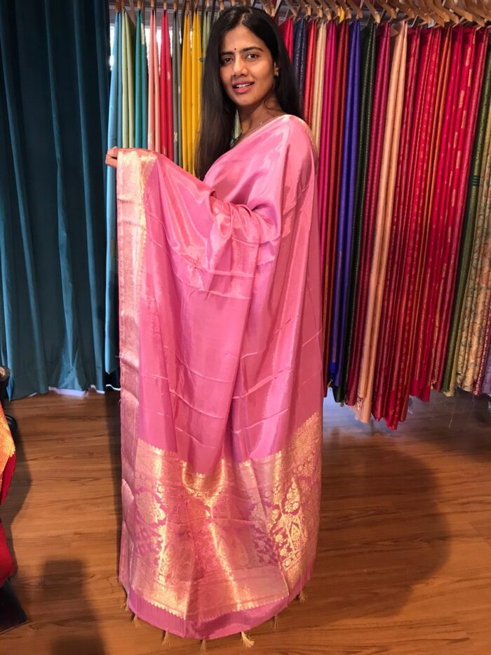 Pink Dola Silk Saree highlighted with Gold Zari Border