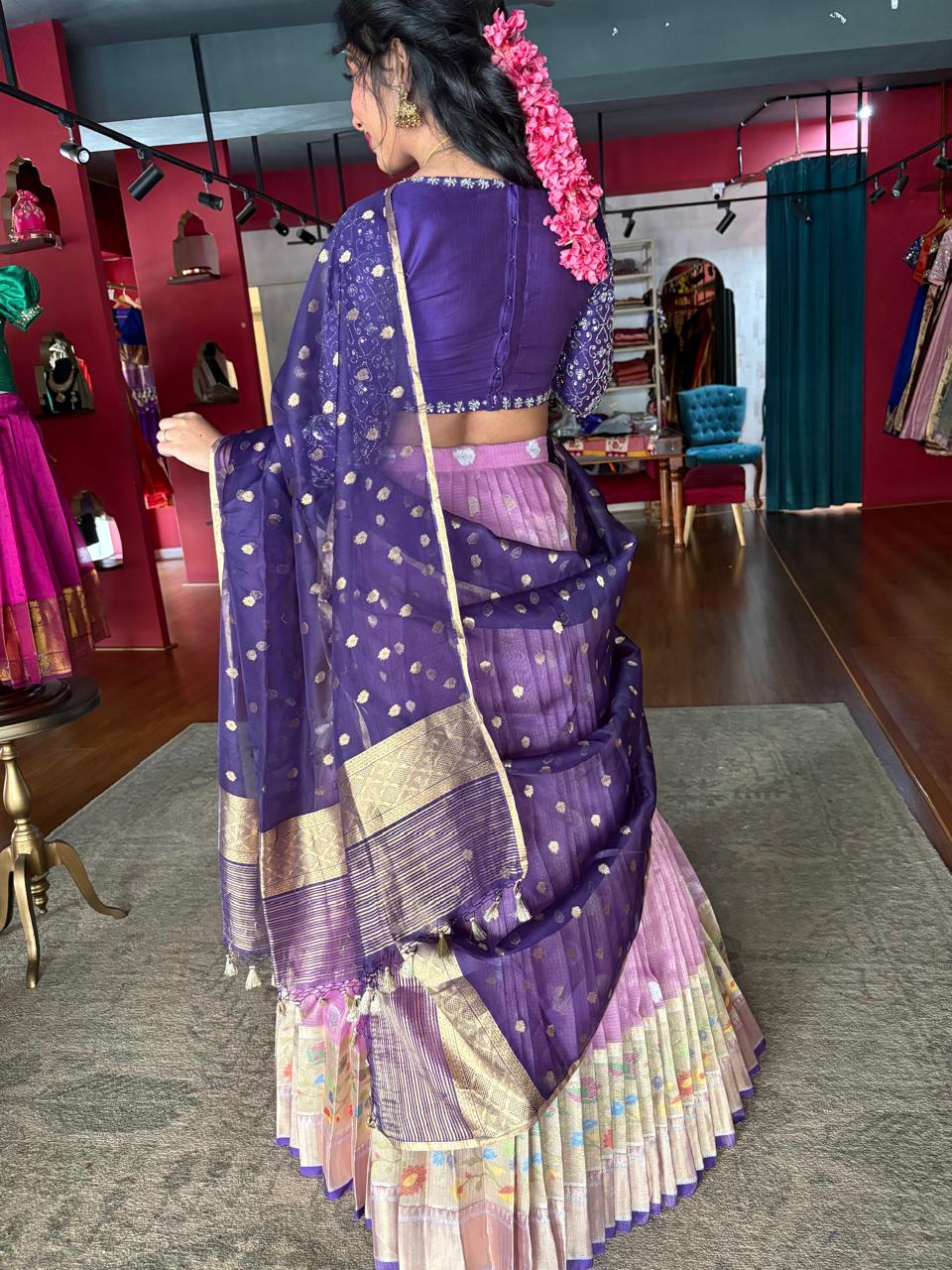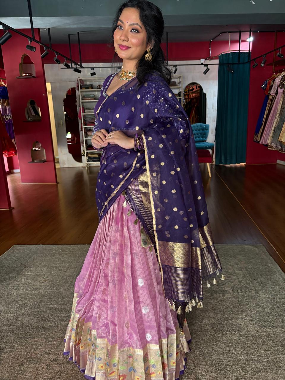 • Handwoven Silk Lehenga comes with Silk Blouse with Tissue Dupatta