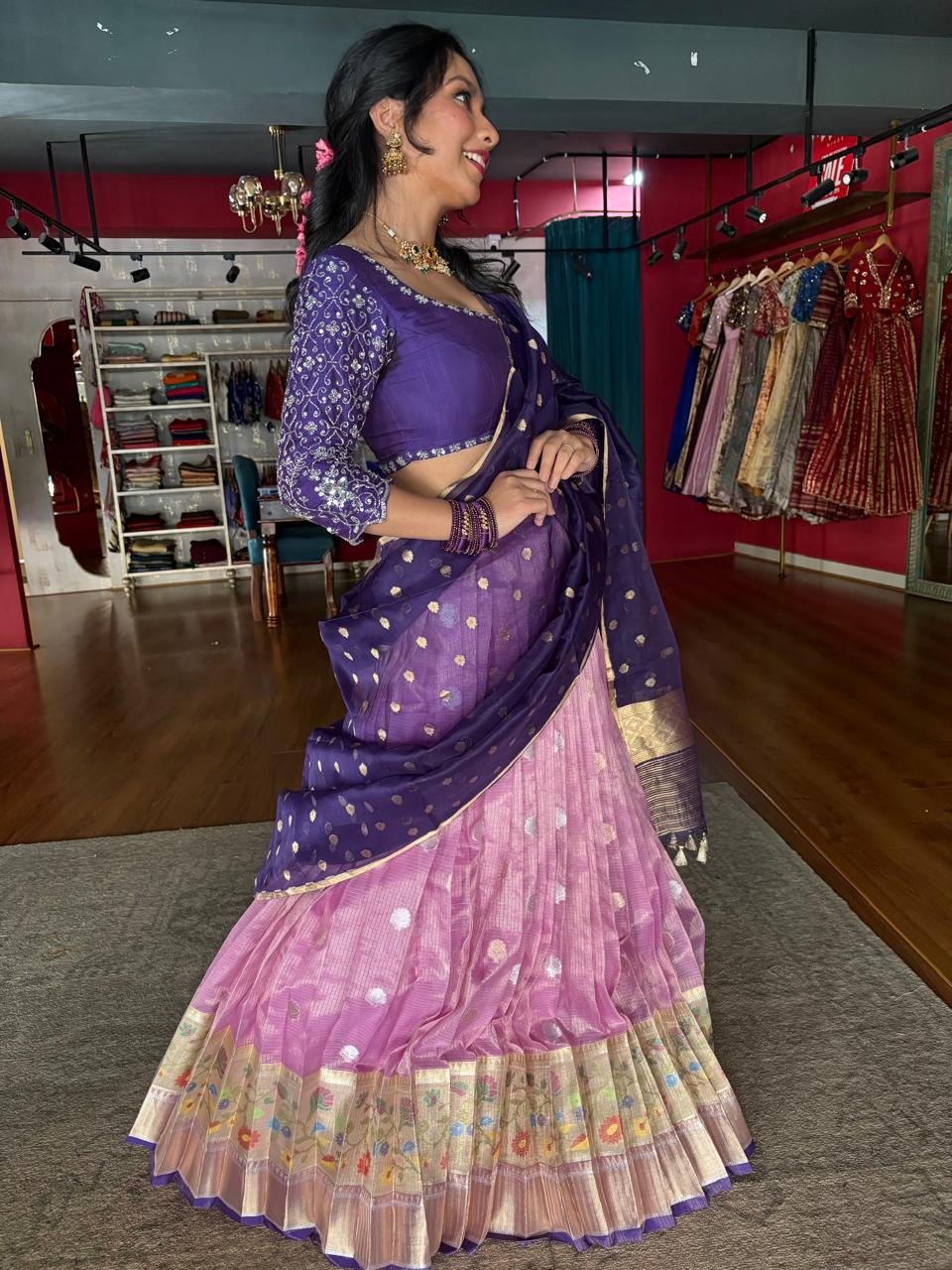 Pink Embroidered Kota Silk Lehenga Set of 2