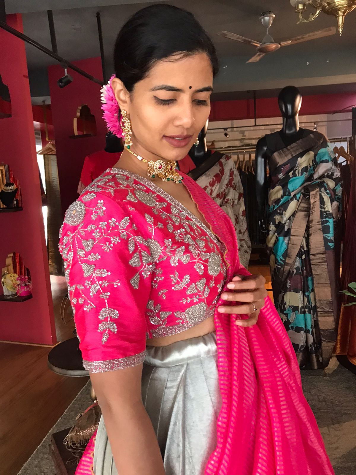 • Blouse closure type – Back Open With Hooks, V Neck, Padded blouse,