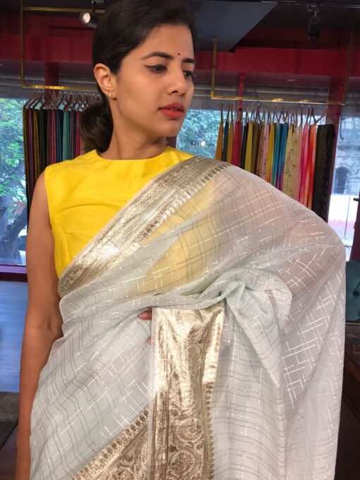 Be the first to review “Powder Blue Georgette Saree highlighted with Zari Border”
