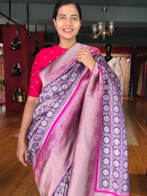 Purple Chiffon Saree with Pure Silver Zari Kadwa Motifs Original price was: Rs 15,000.00.Current price is: Rs 12,000.00.