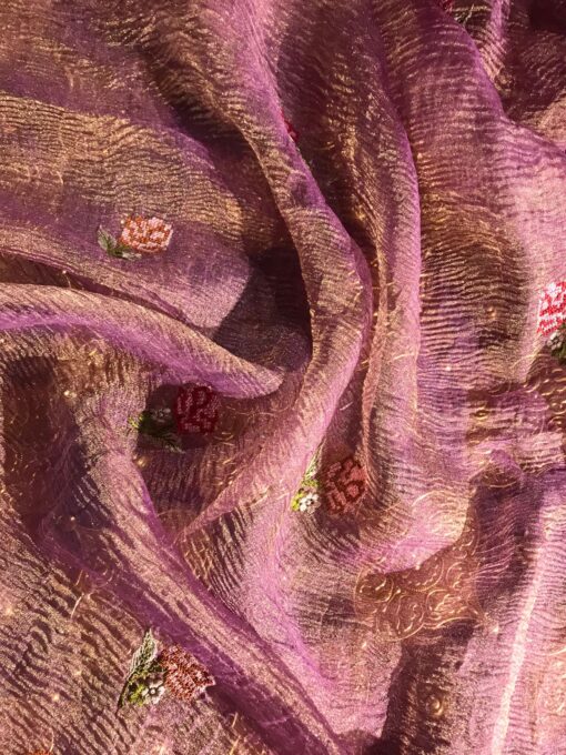 Purple Crushed Tissue Silk Saree with Cutwork Embroidery