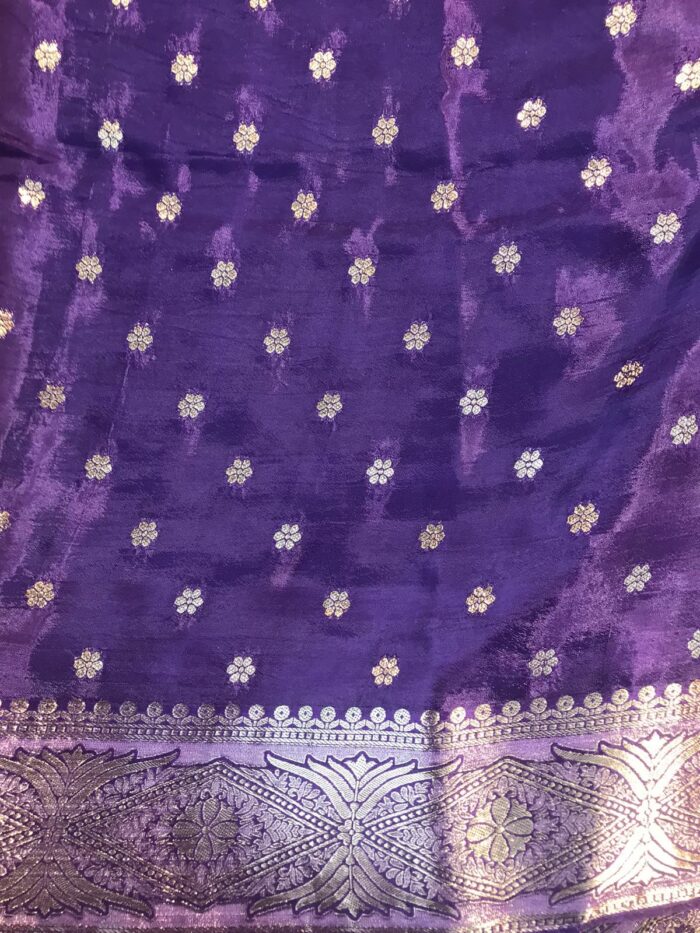Purple Chiffon Saree with Pure Silver Zari Kadwa Motifs
