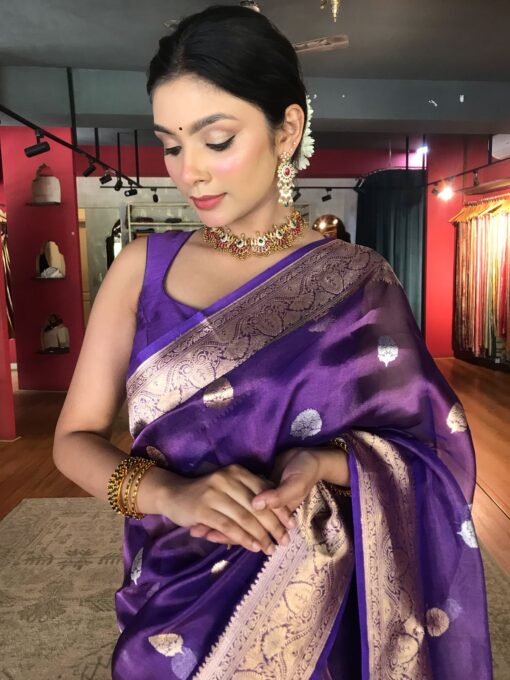 Steam /Iron – Ironing Tissue Silk Sarees requires special care to avoid damaging the delicate fabric. Always iron your saree on a low heat setting and use a pressing cloth or a thin cotton cloth to protect the fabric.