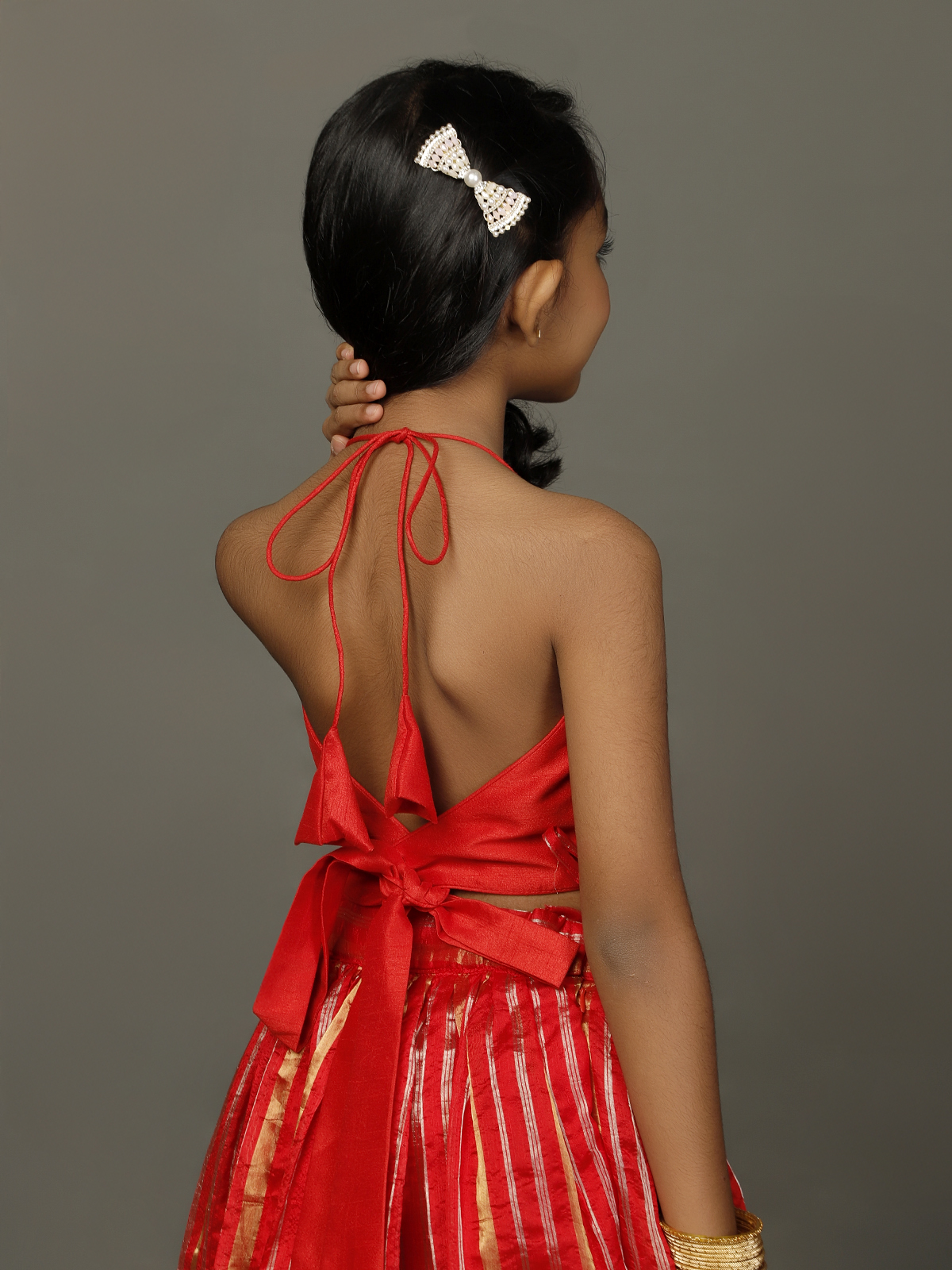 Elegant Red Silk handwoven Lehenga for Girls, perfect for festive or traditional occasions