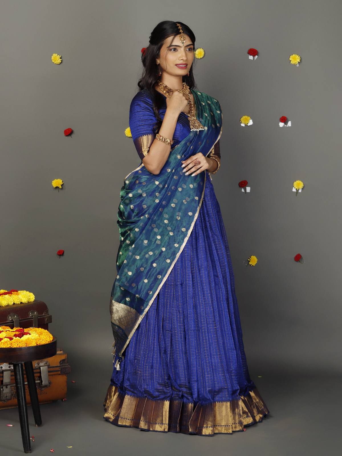 • Handwoven Silk Lehenga comes with Silk Blouse with Tissue Dupatta