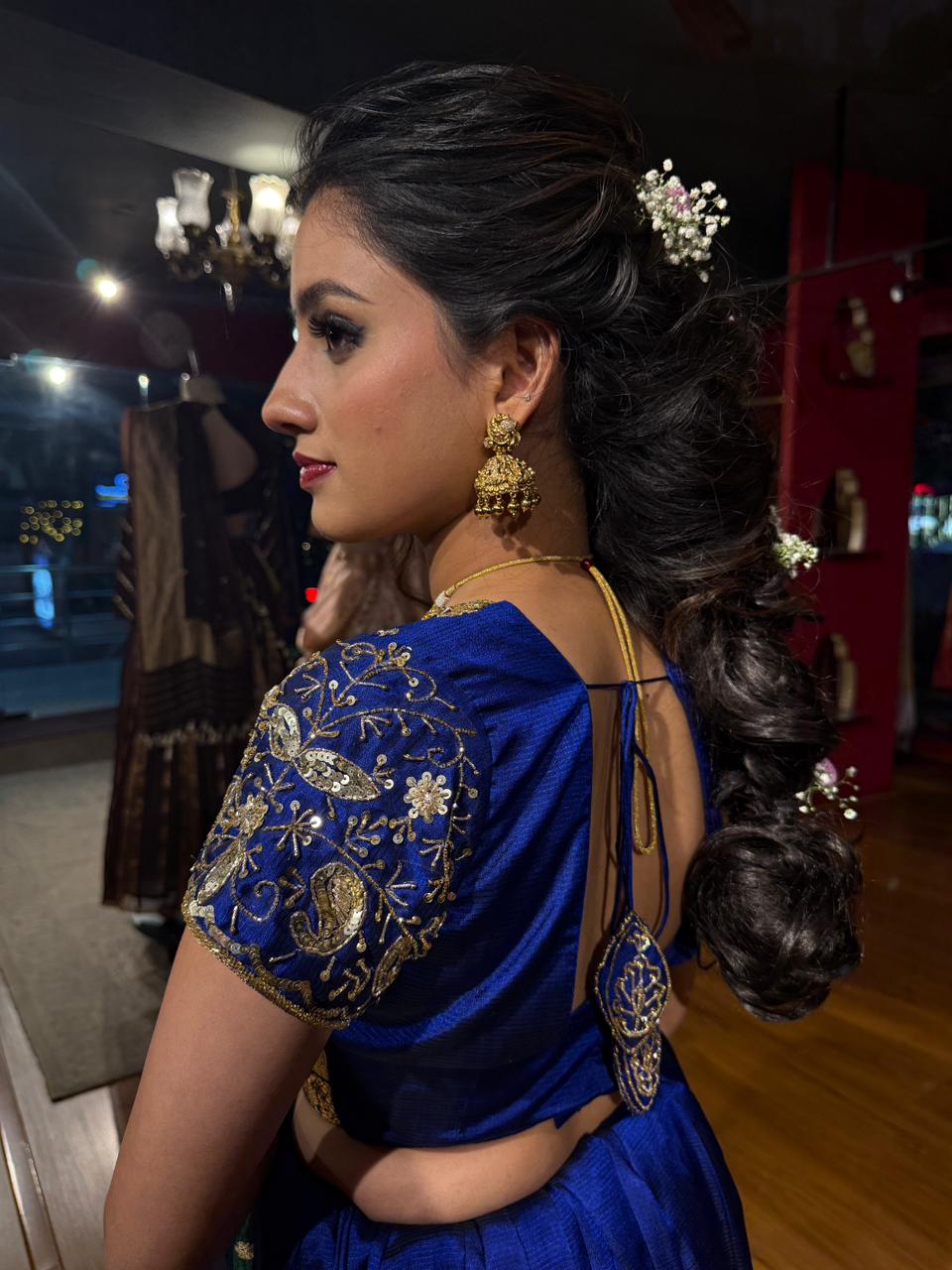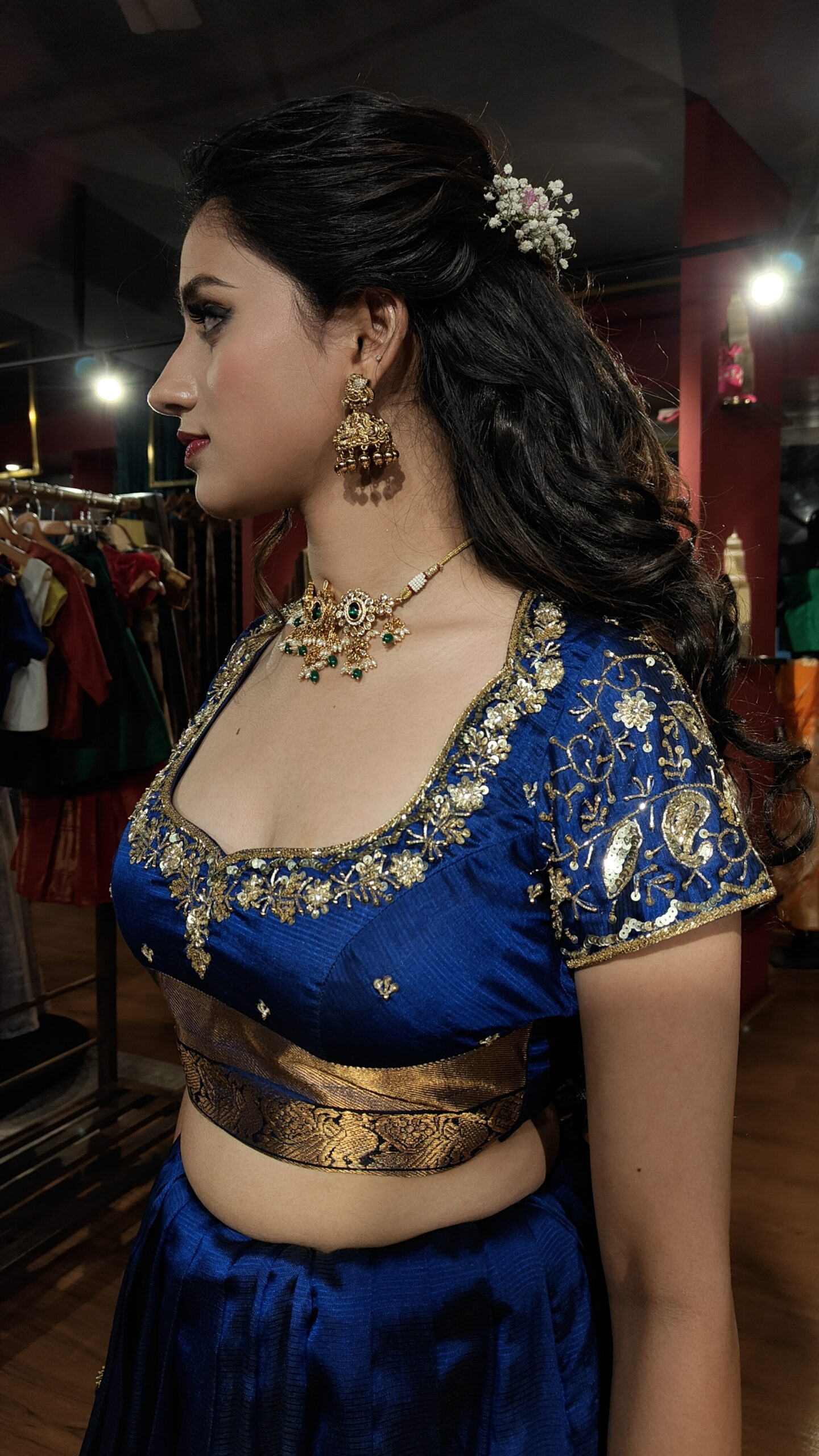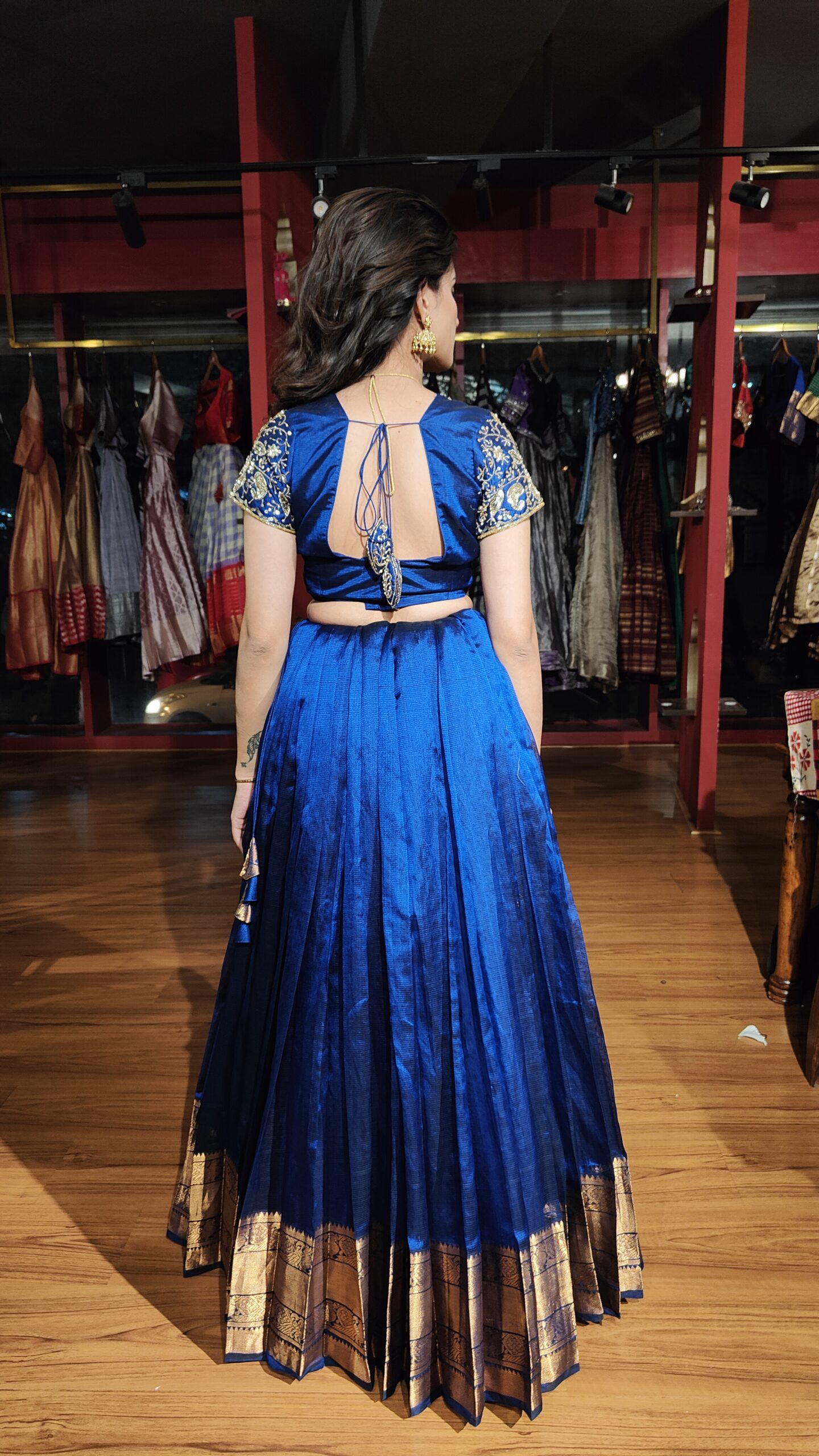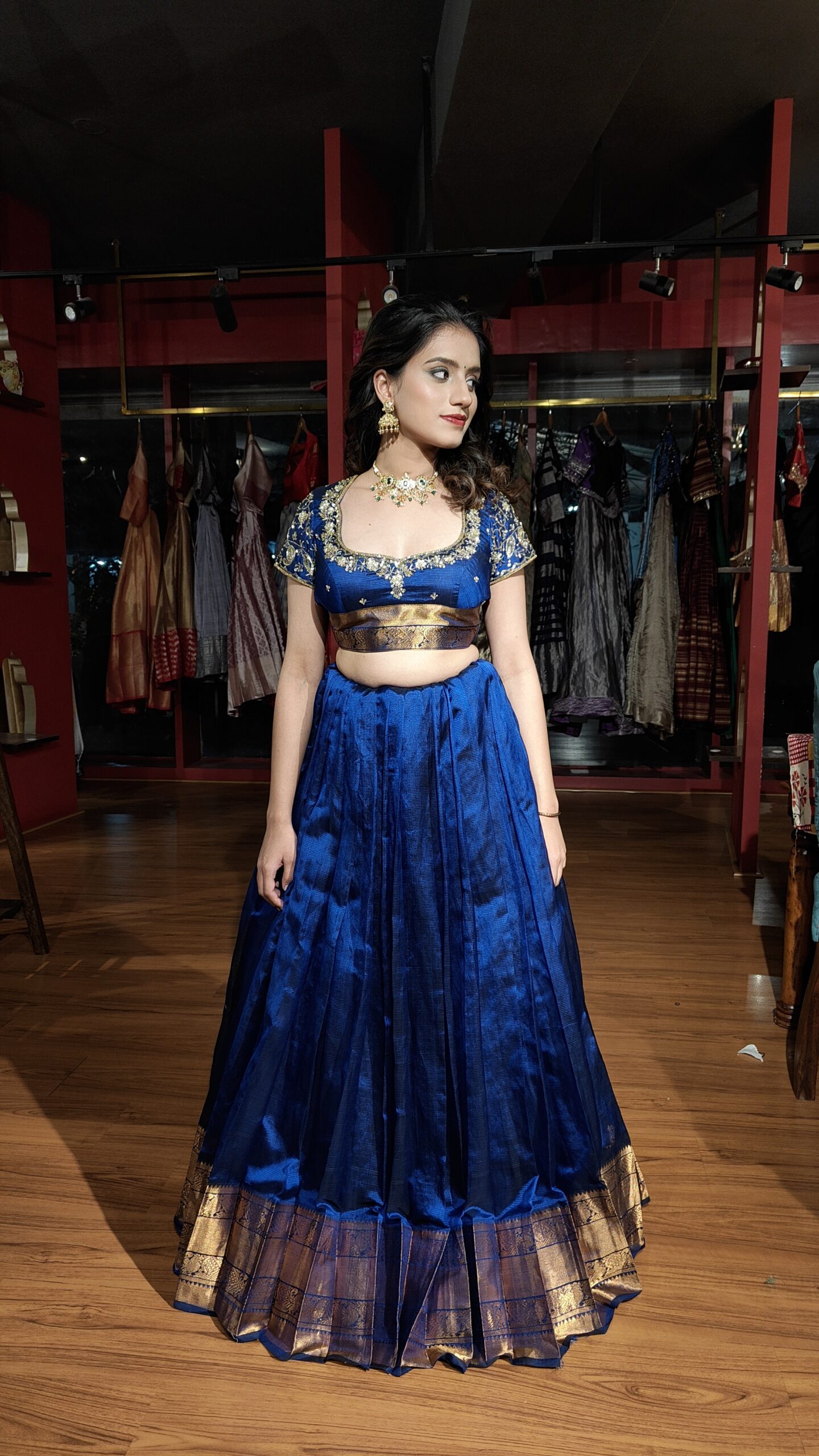 Royal Blue Embroidered Silk Lehenga Set of 2