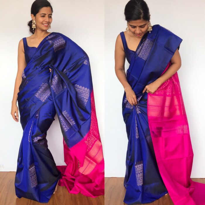 • Royal Blue Kanchivaram Silk Saree with Silver Zari Weaves