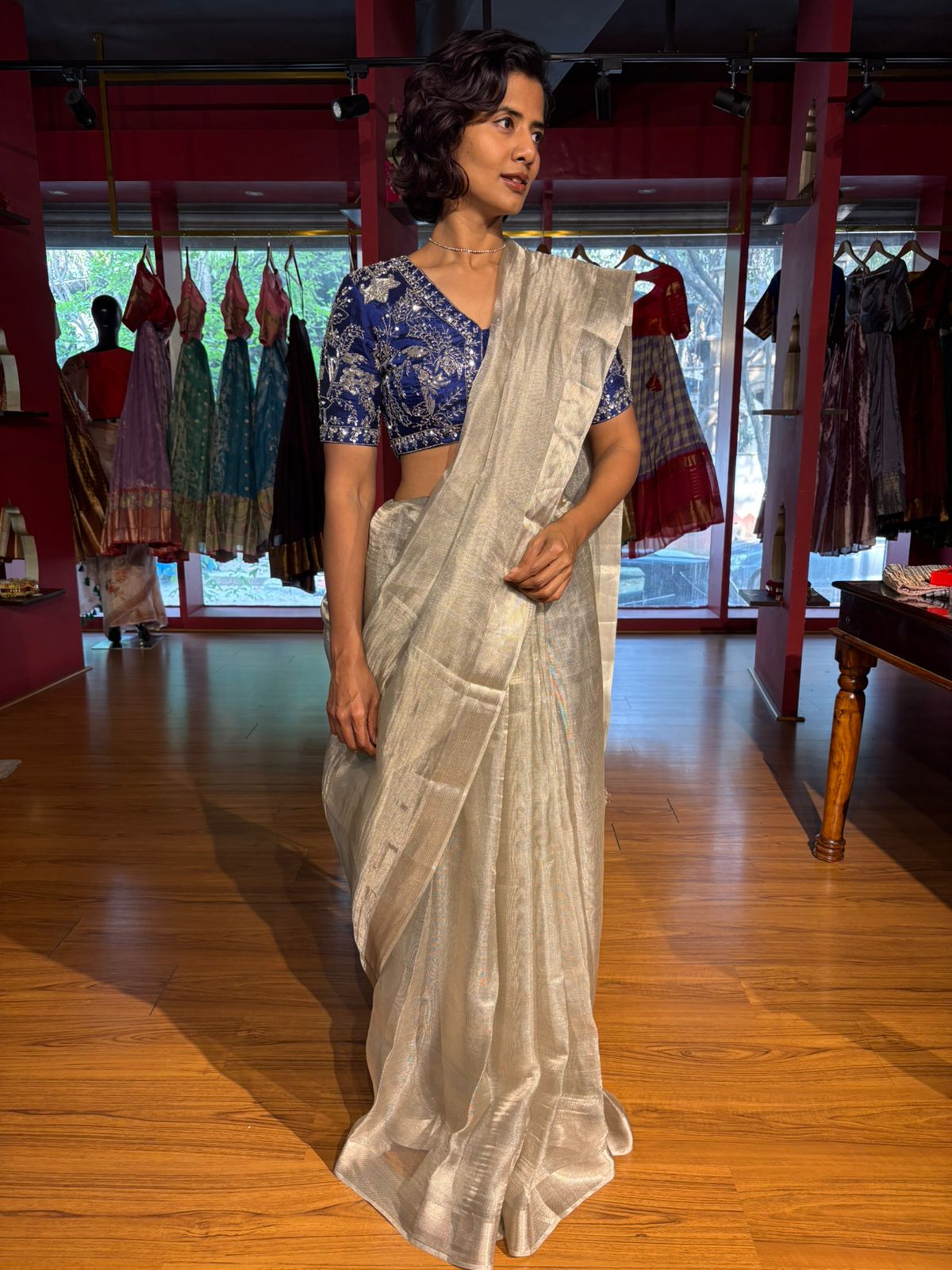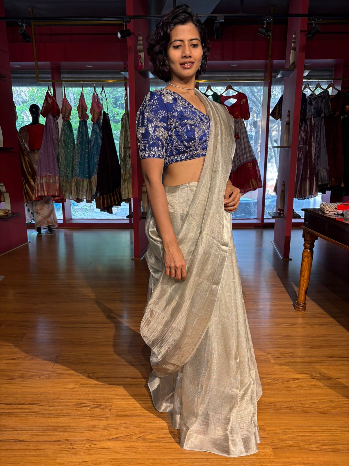 Wash – Dry Wash is the best method for cleaning Tissue Silk Sarees.