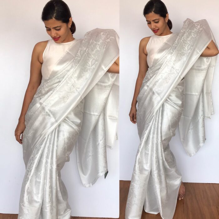• White Banarasi Silk Saree with Silver Zari Weaves