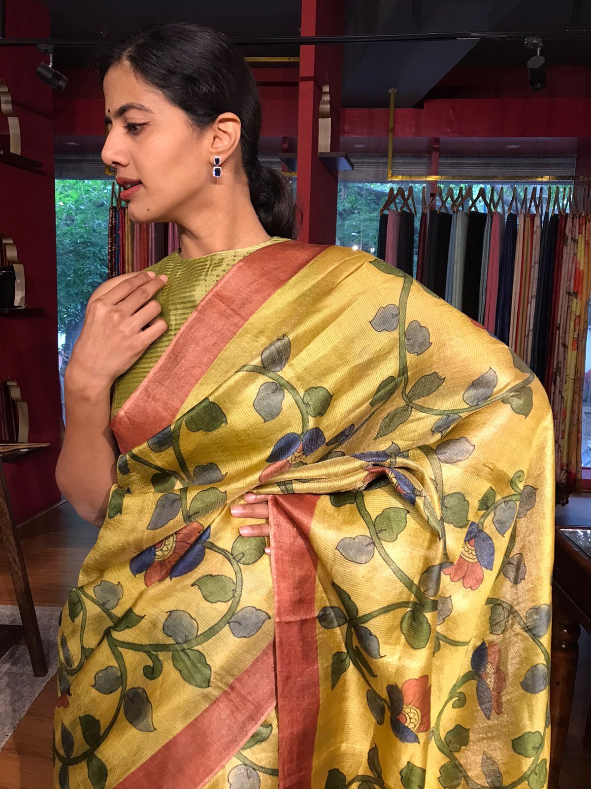 Be the first to review “Yellow Handpainted Tissue Silk Saree”