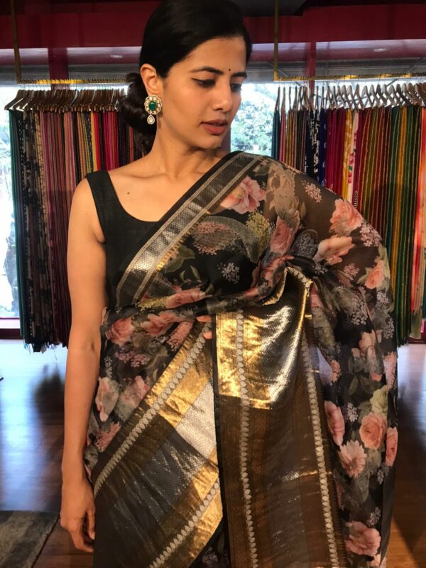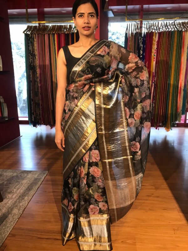 Mustard Yellow Tissue Silk Saree with Gota Detailing