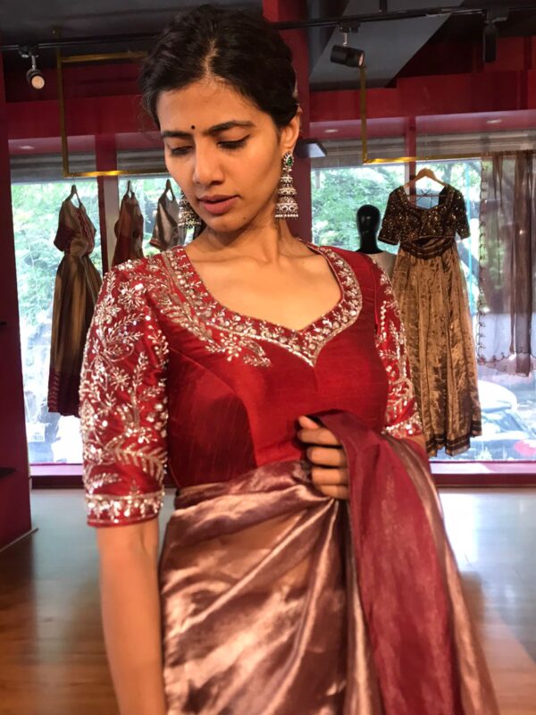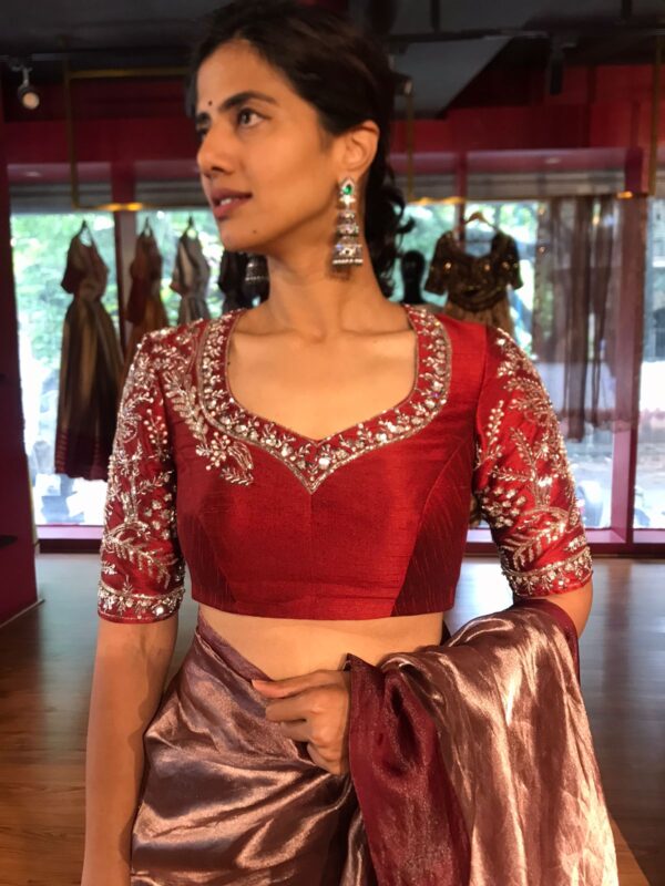 Cobalt Blue Silk Blouse with Intricate Embroidery