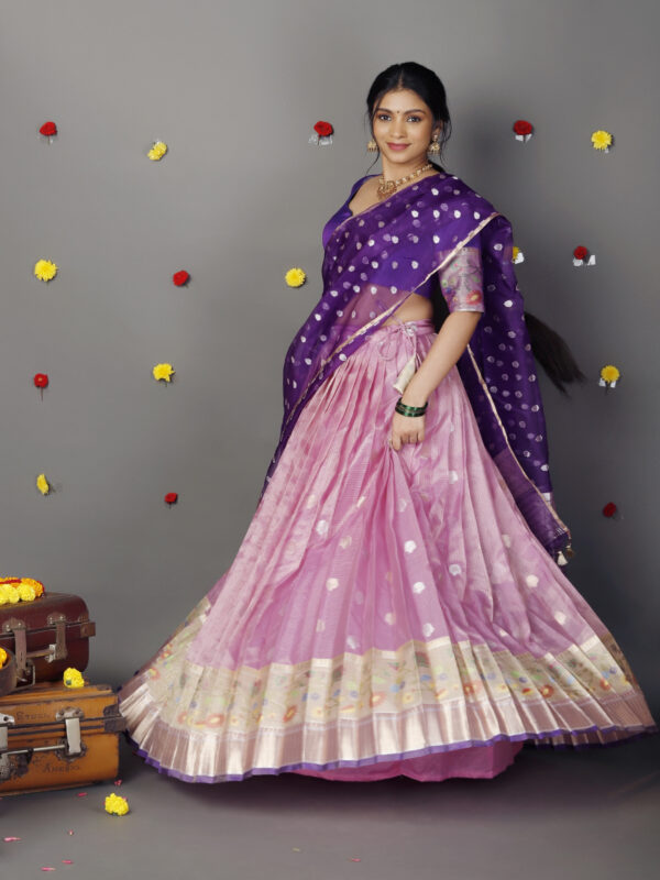 Purple Embroidered Silk Lehenga Set with Tissue Dupatta