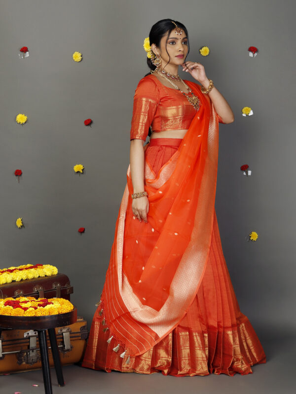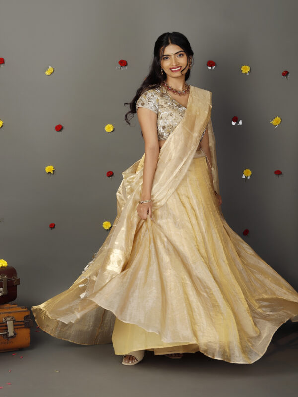 Molten Gold Tissue Silk Half Saree Set with Tissue Silk Dupatta (Set of 3)