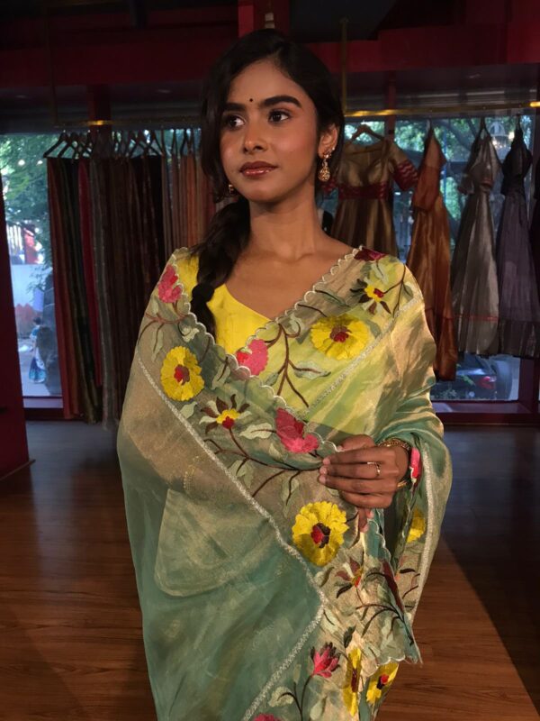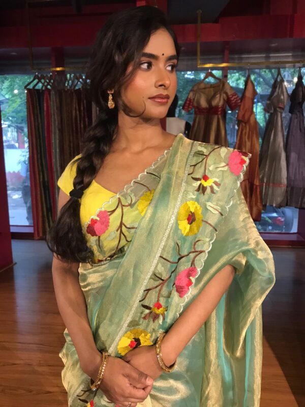 Arctic Blue Tissue Silk Saree with Gold Zari piping