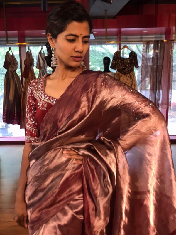 Champagne Gold Tissue Silk Saree with Gold Zari Border