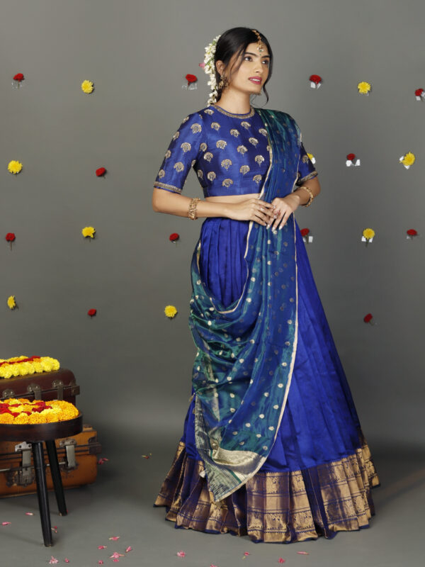 Blue Tissue Silk Lehenga Set with Dupatta (Set of 3)