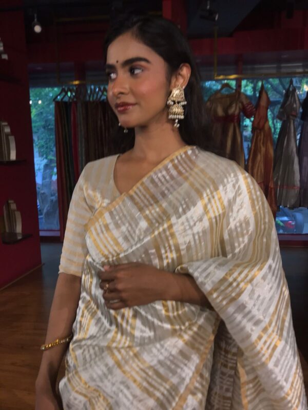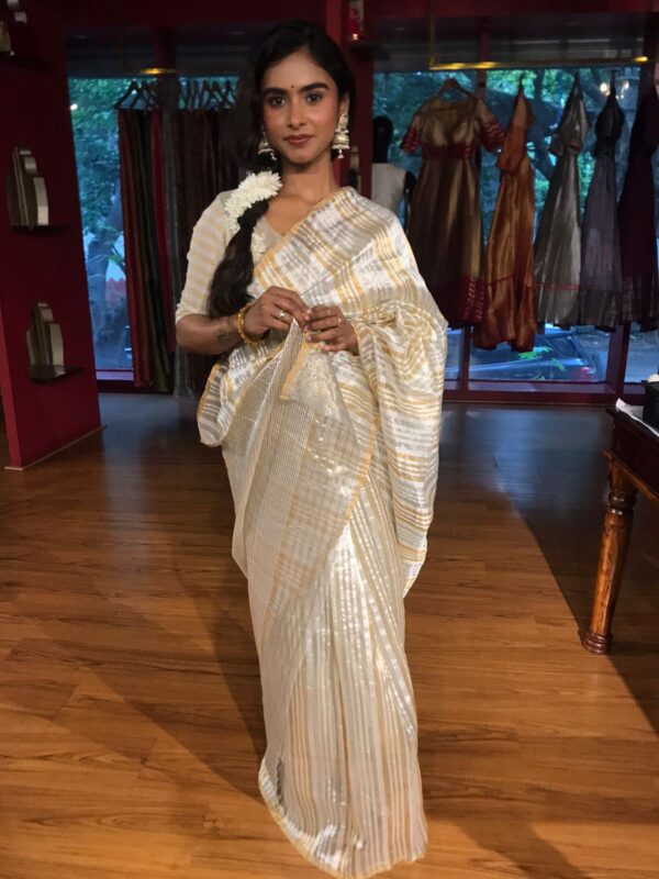 Arctic Blue Tissue Silk Saree with Gold Zari piping