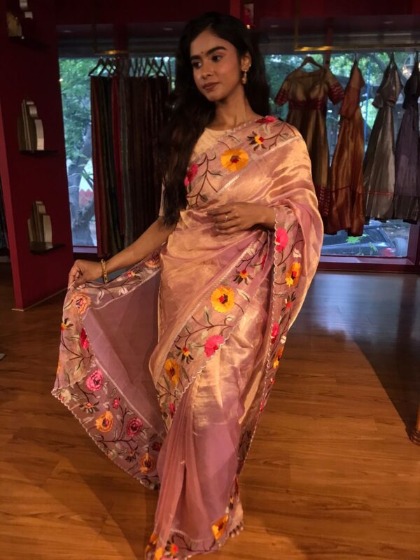 Light Pink Handwoven Tissue Silk Saree with Kadhwa Zari Motifs